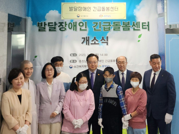 도는 이날 공주에서 김기영 행정부지사와 조규홍 보건복지부 장관, 이경혜 한국장애인개발원장 등 관계자 20여 명이 참석한 가운데, ‘충청남도 발달장애인 긴급돌봄센터’ 개소식을 개최했다.