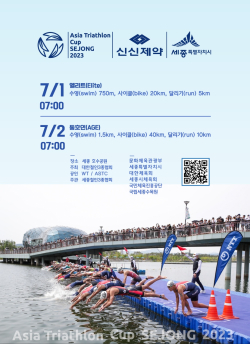 시는 오는 7월 1일부터 2일까지 세종호수공원과 중앙공원 일대에서 ‘2023 세종 아시아 트라이애슬론컵 대회’를 연다.