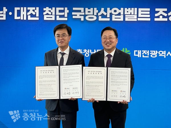 또한 도와 대전시는 또 충남·대전 초광역 국방산단 조성을 적극 검토·추진키로 하고, 국방산업 육성·발전을 위한 연구·자문단 공동 참여, 국방 주력산업 및 방산 혁신클러스터 조성을 위해 상호 협력키로 했다.