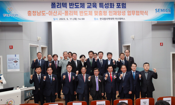 도는 11일 폴리텍대학 아산캠퍼스에서 전형식 도 정무부지사, 박경귀 아산시장, 임춘건 폴리텍 이사장 직무대리 등이 참석한 가운데, ‘폴리텍반도체대학(SEMICS)’ 설립 업무협약을 체결했다.