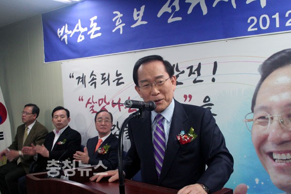 박상돈 후보 출정사에서 18대국회를 역사상 최악의 국회라고 지칭을 한다. 폭력, 욕설, 최루탄 국회라고 까지 지칭하듯이 너무 국민의 기대에 동떨어진 국회를 운영했기 때문이다. 이 국회를 이끌었던 정당이 새누리, 민주통합당이라고 비판했다.