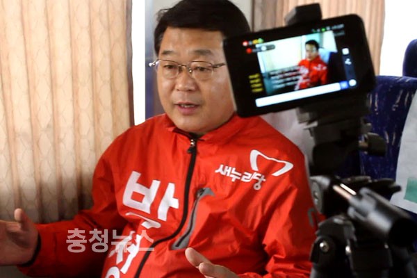 ▲ 박성효 후보가 SNS를 이용한 실시간 공약발표를 하고 있다.