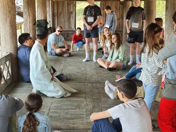 본격적인 프로그램에 앞서 이날 체험하게 될 전통 유교문화 주제에 대해 설명을 듣고 있는 캠프 험프리스 주한 미군 가족들