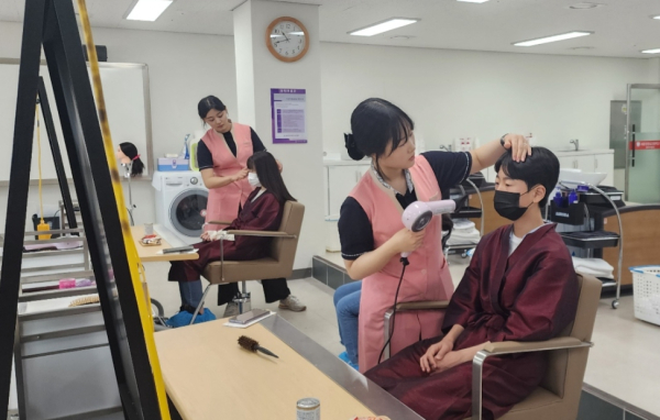 뷰티미용과는 두피관리, 스타일링, 파라핀, 손‧팔 마사지 등의 체험활동을 진행했다.