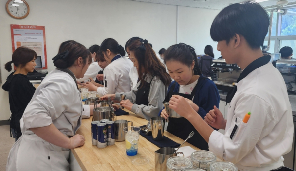 외식조리과는 바리스타와 바텐더 연수 및 학과 홍보와 고추잡채 만들기 체험을 진행했다.