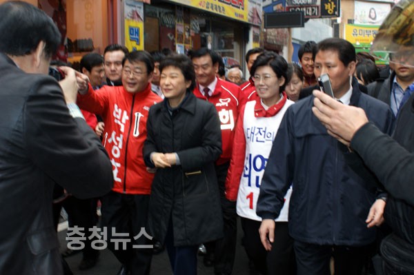 박근혜 비상대책위원장은 16일 오전 대전 중앙시장을 순방하면서 상인들을 격려하고 환담 이후 시장 내 식당에서 상인연합회 관계자들과 오찬을 했다.