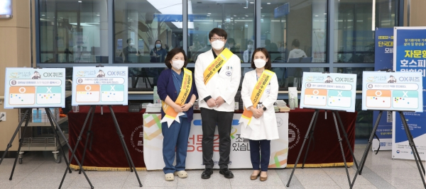 이날 호스피스완화의료팀은 암 환자와 보호자, 내원객을 대상으로 암성통증과 치료에 대해 안내하고, OX 퀴즈를 통한 통증관련 상담 및 교육과 홍보 물품 등을 전달했다.