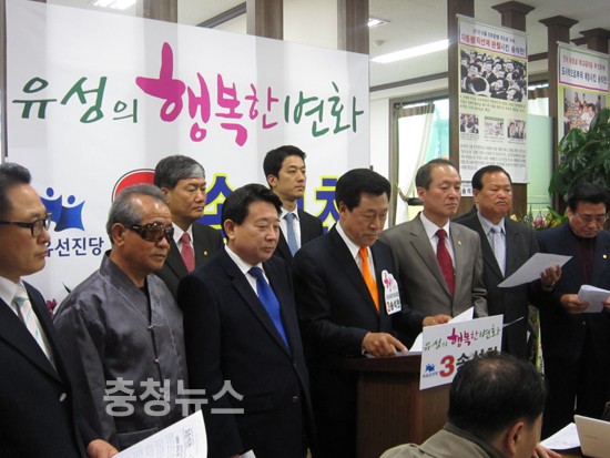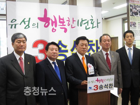 자유선진당 유성 송석찬 국회의원 후보는 18일 오전 자신의 사무실에서 기자회견을 갖고 대통령의 효율적인 국정수행과 국가균형발전을 위해 ‘대통령 집무실’을 대전․충청권에 유치하겠다고 밝혔다.