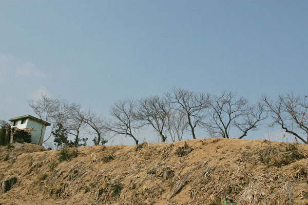한때 콘크리트 벽돌로 만든 시설물이 있었음을 상상하게 하는 구조물이 흙속에 파묻혀 남아 있다. 흙 밑에 묻힌 벽돌이 마치 성벽을 연상케 한다. 집은 없어지고 벽체 일부와 판판한 터만 남은 그 모습도 인상적이다. 무엇인가를 치유하는 행위처럼 그 공간에 햇볕이 한가득 이다.