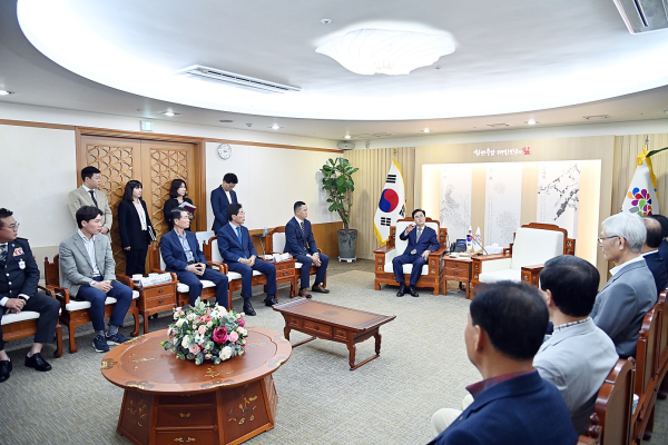 이 자리는 김태흠 지사와 방귀중 케이엠티엘에스 대표이사, 박종회 대한전문건설협회 세종시충청남도회장, 김기선 도체육회 부회장, 이영찬 동성건설 대표이사, 김태국 충청남도자율방범연합회장, 임수흠 공주의료원장, 김희동 한국자유총연맹 충청남도지부 사무처장, 송태성 한국후계농업경영인충청남도연합회장, 이경석 천안의료원장, 박일신 충청남도내포행정동우회장, 이정기 충청남도사회복지협의회장 등이 참석했다.
