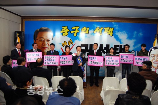 4월 11일 제19대 국회의원 선거후보 등록일을 하루 남겨둔 21일 오후 권선택(자유선진당, 대전 중구)후보는 선화동 선거사무소에서 개소식을 갖고, 국회의원 3선 도전을 공식화했다.