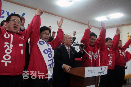 서청원 前 대표는 “이제 지역 정당에 의지해서는 더 이상 충청지역의 발전을 이끌 수 없다”며 “박 비대위원장이 연말에 확실하게 대통령이 될 수 있도록 이번 총선에서 새누리당에 확실한 지지를 보내줘야 한다”고 강조했다.