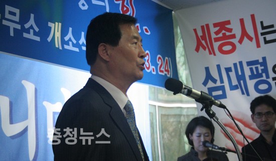 자유선진당 심대평 대표가 24일 오후 조치원 선거사무실 개소식행사를 갖고 '세종시의 꿈!', '심대평의 힘!' 세종시를 국가대표도시로 만들겠다며 공약과 세종시 초대국회의원 선거 출마이유를 밝혔다.