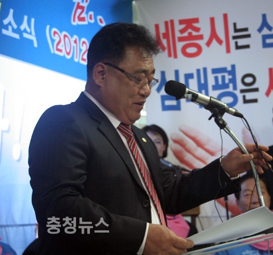 세종시 초대국회의원 선거 출마이유로 두 가지를 말했다. 하나는 세종시에 대한 심대평의 약속이고 또 다른 하나는 세종시에 대한 심대평의 책임이다라며 노무현 정부가 아무 대책도 내놓지 못하고 있을때 신행정수도 위헌판결 후 5백만 충청인의 위헌반대투쟁을 이끌었내고 대안을 만들어 낸 장본인이 심대평이라고 역설했다.