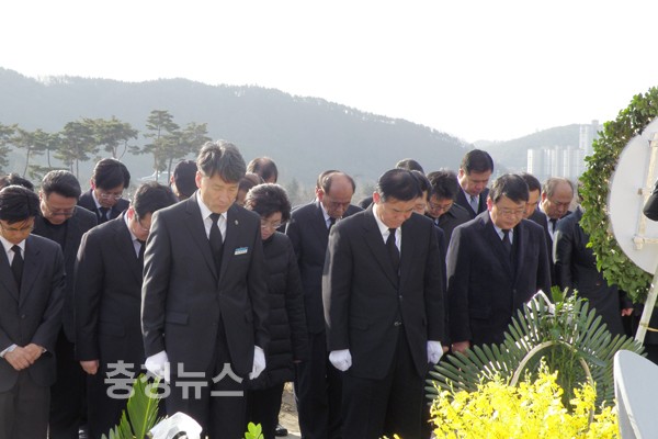▲ 대전지역 후보자들이 고인의 묘앞에서 호국영령의 정신을 기렸다.