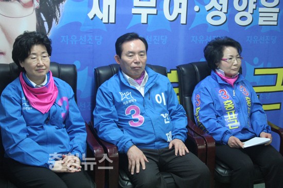 이인제 선대위원장은 "어떻게 우리 충청도가 자존심이 있는데 FTA당에게 표를 줄 수 있겠습니까 그건 절대안돤다. 제주해군지기를 해적기지라고생각하는정당과 연대하는 정당에 어떻게 나라를 맡길수 있겠느냐며 똘똘 뭉쳐서 자유선진당에게 표를 주고 홍표근에게 표를 줘서 부여,청양 발전을 위해서 확실하게 지지해달라고 호소했다.