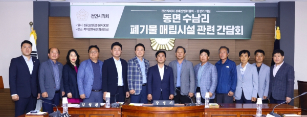[충청뉴스 박동혁 기자] 충남 천안시의회는 동면 수남리 폐기물 매립시설 설치와 관련해 천안시청 소관부서, 비상대책위원회와 대응 모색에 나섰다고 밝혔다.