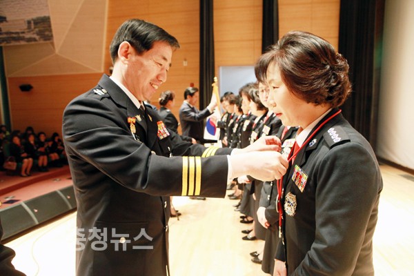 ▲ 정용선 충남경찰청장이 엄마순찰대원 임명식을 진행하고 있다.