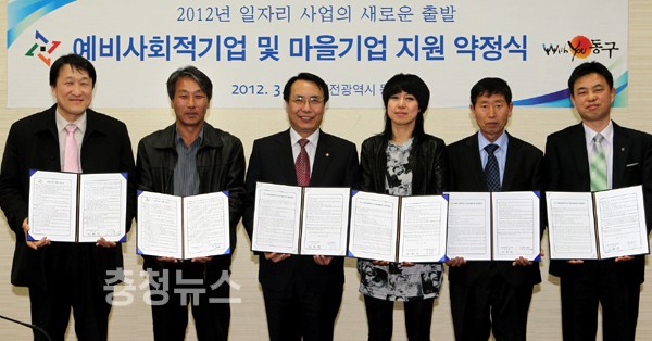 이날 동구와 약정을 체결한 업체는 예비사회적기업 일자리창출사업 단체로 선정된 찬샘영농조합법인, 사단법인 맑은눈 나눔의 집, 주식회사 천지농산 등 3개 단체와 마을기업으로 선정된 추동마을공동체, 넥스트클럽 등 2개 단체이다.