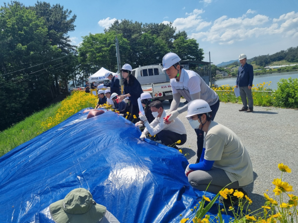 [충청뉴스 최형순 기자] 한국농어촌공사 부여지사에서는 방재의 날을 맞이하여 2023년 저수지 비상 대처 훈련을 실시했다.