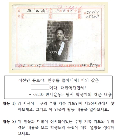 학생들은 ‘3·1운동 봉기도’, ‘광주학생독립운동’, ‘민영환 유서’, ‘6.10만세운동 판결문’ 등 독립운동과 관련된 전시물의 체험 활동지를 제작·발표했다.
