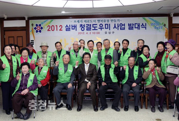유성구(구청장 허태정)가 2일 오전 구청 중회의실에서 관내 33명의 어르신들로 구성한 ‘실버청결도우미’ 발대식을 갖고 오는 6월말까지 3개월 동안 쓰레기 없는 거리 조성사업에 들어갔다.