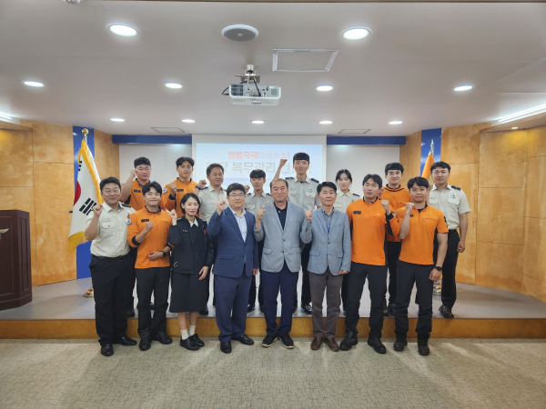 지난달 31일 홍성소방서에서 방방곡곡 현장 복무관리 컨설팅을 가진 후 참가자들이 기념사진을 찍고 있다