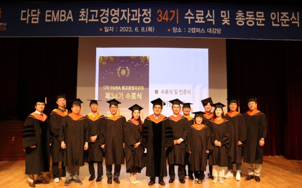 [충청뉴스 박동혁 기자] 한국기술교육대학교(이하 한기대)의 ‘다담 EMBA(Executive Master of Business Administration) 최고경영자과정’ 제34기 수료식이 지난 8일 한기대 2캠퍼스에서 개최됐다.