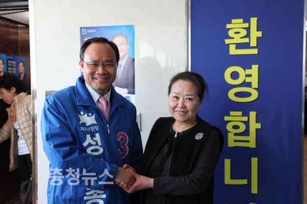 동갑내기로 평소 친분관계가 돈독한 두 사람은 만나자 마자 반갑게 두 손을 마주 잡고 덕담을 나누었다. 김 여사는 “현재 선두를 달리고 있다고 들었다. 꼭 당선되기를 바란다.”고 격려했고, 이에 성 후보는 “이렇게 지원해 주기 위해 서산까지 찾아 주셔서 감사하다”면서 “꼭 당선돼서 성원에 보답 하겠다.”고 인사했다.