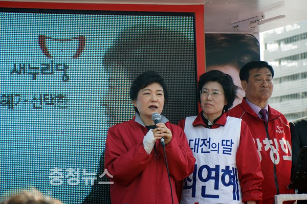이어 “대전시민들이 저희에게 기회를 주시면 여러분이 후회하지 않도록 반드시 보답해 드리도록 하겠다. 저와 새누리당은 국민과의 약속을 생명처럼 지킬 것이다. 그리고 대전시와 충청의 발전을 지켜낼 것”이라고 강조했다.