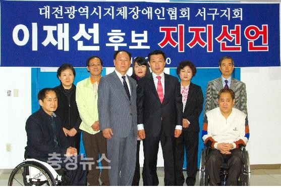 지체장애인 협회를 대표해 박태규 회장은 “그동안 선거일이 다가오면서 우리는 여야를 불문하고 중립을 지켜왔지만 어느 후보도 장애인에 대한 편견과 차별해소를 위해 노력하는 흔적이 없다”며 “그러나 이재선 후보는 평소 의정활동을 하면서 장애인과 노인, 여성을 비롯한 약자를 위해 가장 애써 왔으며 앞으로도 많은 역할을 할 수 있는 후보로 판단된다”고 지지선언 배경을 밝혔다.