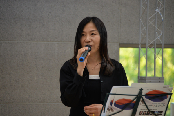 박지현 대표는 ‘스스로 몸을 태워 어둠을 사르는 촛불같이 목숨 녹여 이 나라 당신의 넋은 언제나 망망대해에서 뱃길을 열어 주는 등대로 우뚝 서 계십니다’라는 유연숙 시인의 ‘넋은 별이 되고’를 낭독해 잔잔한 감동을 주었다.