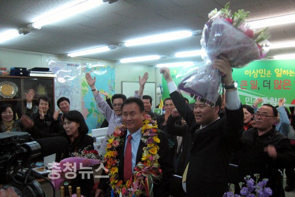 ▲ 이상민 후보가 지지자들의 축하를 받고 있다.