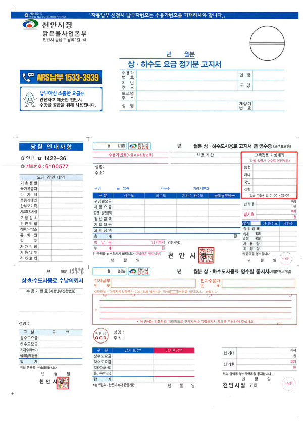 [충청뉴스 박동혁 기자] 천안시 맑은물사업본부는 오는 7월 고지분부터 상하수도요금 가상계좌 납부은행을 확대한다고 16일 밝혔다.