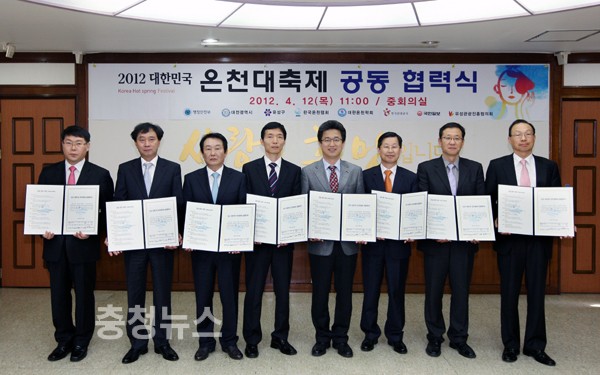 유성구(구청장 허태정)가 12일 오전 11시 구청 중회의실에서 2012 대한민국 온천대축제의 성공적인 개최를 위해 행정안전부 등 7개 관계기관과의 공동 협력식을 개최했다.
