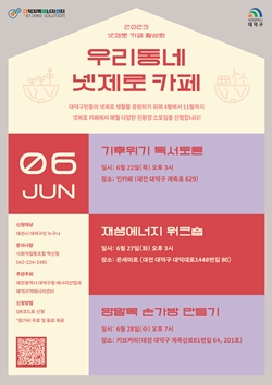 [충청뉴스 김남숙 기자] 대전 대덕구가 구민들의 넷제로(Net-zero) 생활을 응원하고자 6월 ‘에너지 소모임’을 진행한다.