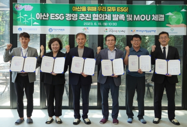 [충청뉴스 박동혁 기자] 아산 ESG 경영 추진 협의체가 19일 영인산자연휴양림 회의실에서 발족하고, 소속기관 간 지역 내 ESG 경영 실천을 위한 업무협약을 체결했다.