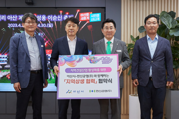 [충청뉴스 박동혁 기자] 충남 아산시는 지난 21일 시장실에서 한신공영(주)과 아산시 지역건설산업 활성화를 위한 지역 상생협력 업무협약을 체결했다.