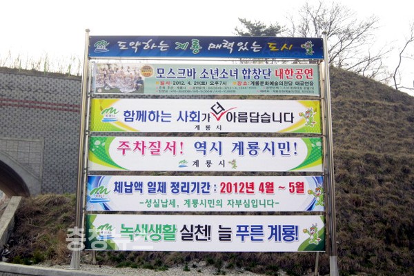 ▲ 계룡시가 현수막을 통해 독특한 홍보문구를 사용해 눈길을 끌고 있다.
