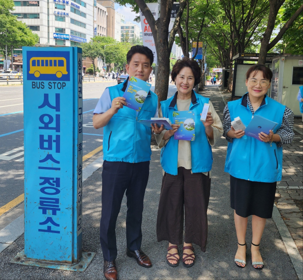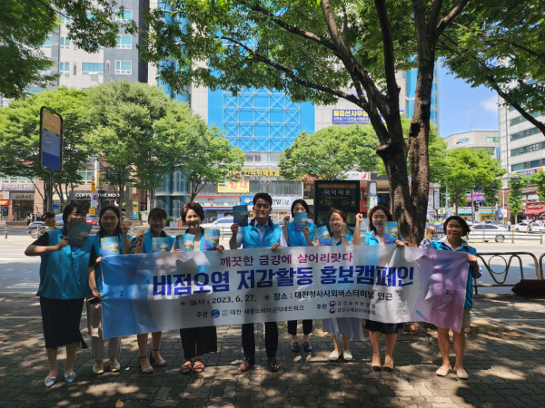 [충청뉴스 최형순 기자] (사)대전세종소비자공익네트워크(회장 도정자)는 27일 대전청사 시외버스터미널 일대에서 장마철 집중호우 등 대비하여 건강보험공단 대전서부지사(지사장 황희식) 와 함께 일반시민 500명 대상으로 비점오염물질 발생을 줄이기 위한 시민홍보 활동을 전개했다.