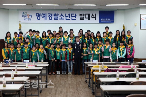 대전둔산경찰서(서장 이병환)는 지난 20일 오후 경찰서 5층 대회의실에서 대전 샘머리초등학교 등 관내 5개소 초등학교 4-6학년 57명으로 구성된 ‘제13기 명예경찰 소년단’ 발대식과 위촉식을 가졌다.
