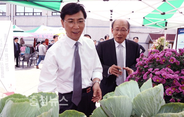 ▲ 안희정 충남도지사가 영산홍 축제에서 꽃을 구경하고 있다.