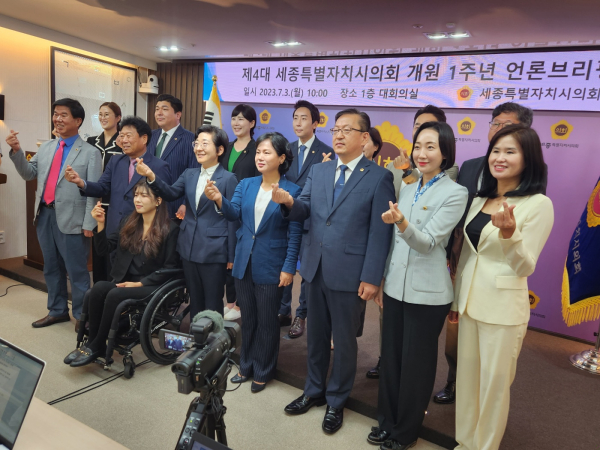 개원 1주년 언론브리핑에 참여한 세종시의회 의원들