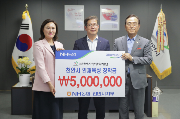 [충청뉴스 박동혁 기자] NH농협은행 천안시지부는 7일 천안시청에서 장학기금 500만원을 천안사랑장학재단에 기부했다.