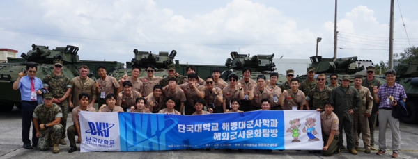 7일 단국대에 따르면 일본 오키나와에서 진행한 이번 탐방에는 4학년 재학생 23명이 참가해 오키나와 주둔 미 해병대 부대(제3해병기동군)를 탐방하고, 평화기념공원 등을 방문했다.