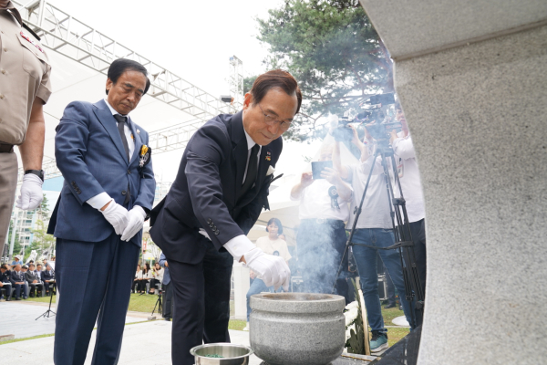 박상돈 시장은 “6·25 한국전쟁 당시 이 땅에서 장렬히 산화한 미군용사들의 명복을 빌며, 그들의 용기와 헌신에 한없는 존경과 감사를 표한다”며 “호국선열의 희생을 잊지 않고 보훈가족들이 합당한 예우와 존경을 받는 천안시를 만들어 나가겠다”고 말했다.