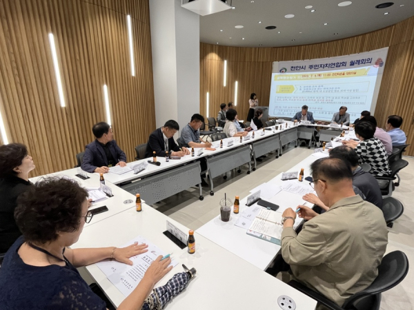 지난 6일 열린 천안시주민자치연합회 회의에서 시 관계자가 골목형상점가 지정사업에 대해 설명하고 있다/천안시 제공