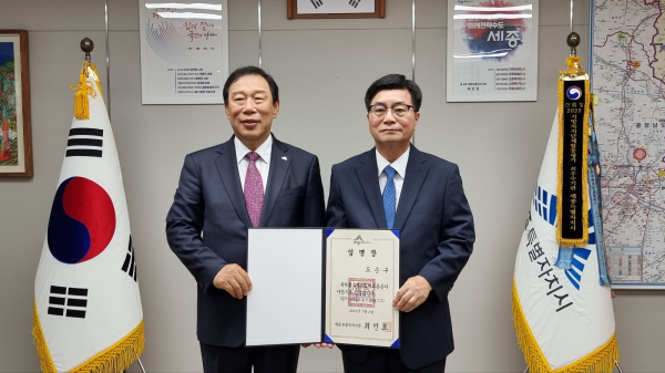 [충청뉴스 최형순 기자] 세종도시교통공사 제3대 도순구 사장이 10일 최민호 세종시장으로부터 임명장을 받고 3년 임기를 시작했다.