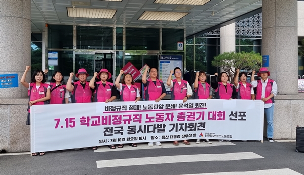 학교비정규직노조 대전지부가 10일 기자회견을 열고 오는 15일 총궐기대회를 선포했다.