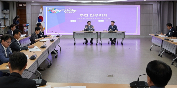 주간업무보고 회의 진행 장면/아산시 제공